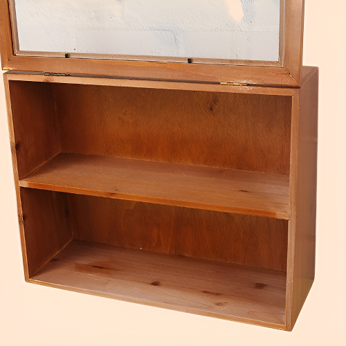 Retro solid wood cosmetic storage box with flip glass dustproof doors, two-layer design, space-saving, clear display, protects cosmetics from dust, durable and stylish for vanity organization.