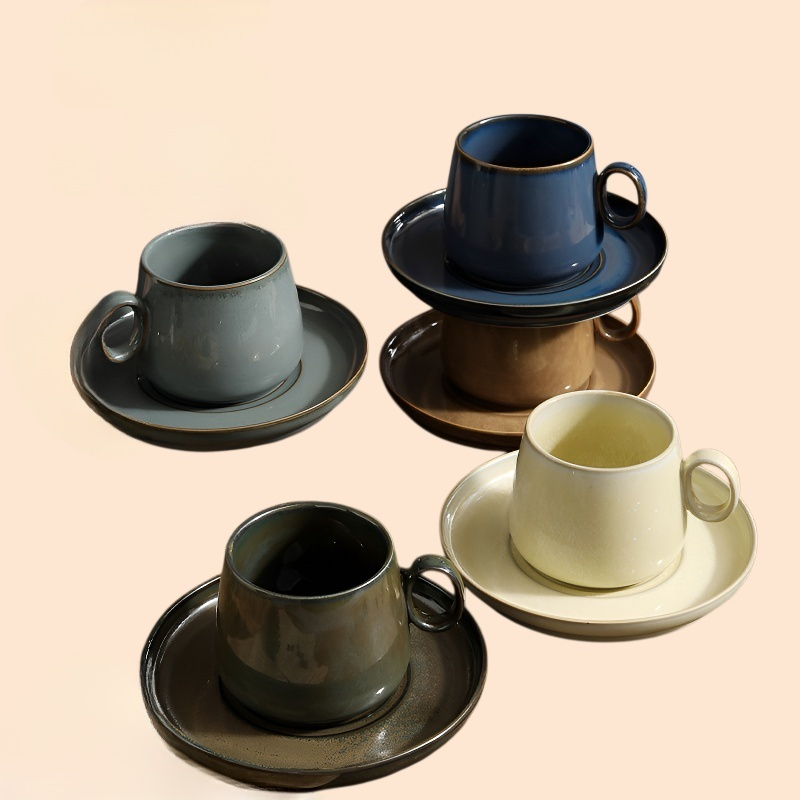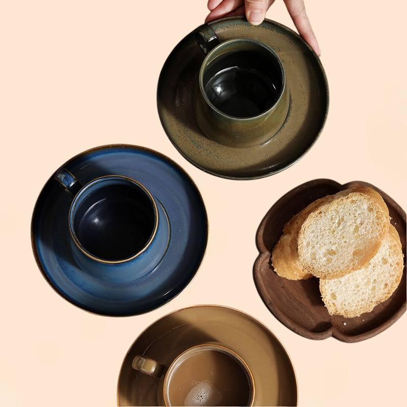 Kiln-changed coffee cup and saucer set features unique glaze patterns, high-quality ceramic, heat resistance, and easy cleaning for an elevated coffee experience.
